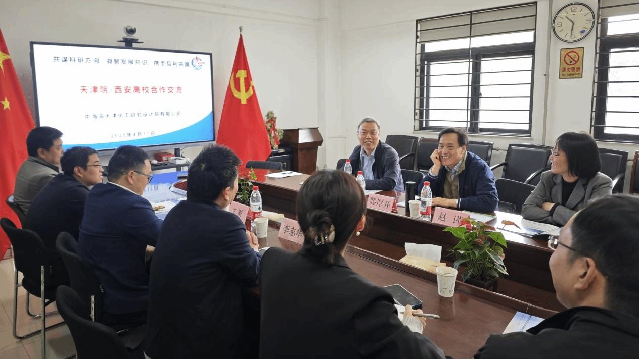 2025年4月11日,中海油天津化工研究设计院有限公司总工程师滕厚开、科技发展部经理周立山、期刊部主任赵谨一行来我院开展校企合作交流。国际交流合作处副处长李志华教授,yl23455永利官网副院长文刚教授、李倩教授、吴鹍教授等出席会议。