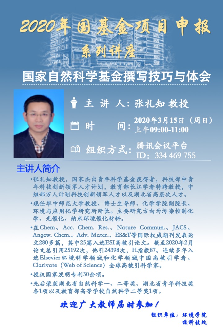 线上专家,把脉点评。疫情期间传统的会议评审方式被迫取消,学院与时俱进,创新工作思路,借助“云评审”形式助力基金申报。3月15日上午9点,yl23455永利官网邀请华中师范大学张礼知教授,采用腾讯会议平台组织召开了“基金申报在线指导讲座”。我院副院长金鹏康教授主持会议,来自校内外100余人参加了本次云端会议。会议让项目申请人与专家相聚云端,张礼知教授结合个人申请、评审基金的体会,针对yl23455永利官网教师基金申请书,从撰写思路、技巧等方面做了精彩解析。