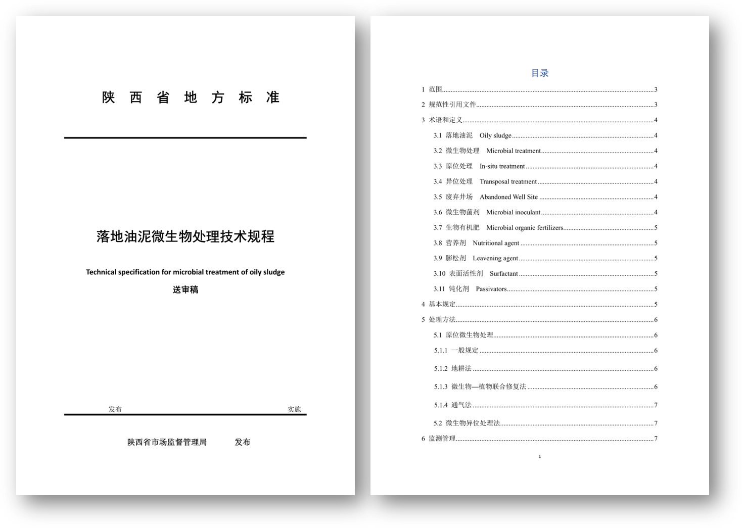 目前,陕西省所发布的油气田落地油泥处置标准仅有《含油污泥处置利用控制限值》(DB61/T 1025),其规定了落地油泥处置的控制标准,但仍缺乏规范性的处理技术规程,显著制约了我省油气田产业的可持续发展步伐。针对此问题,西安建筑科技大学金鹏康教授率领污水处理与资源化创新团队,长期致力于油气田开发过程的落地油泥治理研究,创新了落地油泥微生物处置的基础理论,研发了落地油泥微生物处置的系列工程技术。经过十余年积淀,以团队在落地油泥微生物处理方面的理论研究和大规模应用经验为基础,遵循“科学性、实用性、规范性、安全性、适用性、可行性”的原则,西安建筑科技大学协同中国石油天然气股份有限公司长庆油田分公司、陕西省环境科学研究院、西安交通大学,完成了《落地油泥微生物处理技术规程》(简称《规程》)的编制,该标准的发布可有力保障我省油气田开发企业的发展需求与国家地方环保事业。