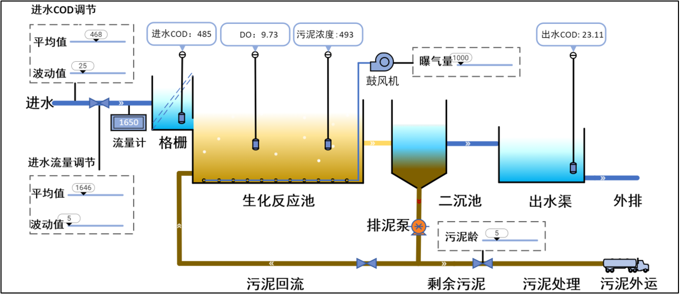水处理工艺虚拟仿真实践平台由软件系统与硬件设备两部分组成,包含生物处理过程虚拟仿真与污泥沉淀过程虚拟仿真两个板块,前者模拟了活性污泥去除污染物的生物过程,后者模拟了沉淀池的澄清与浓缩过程。软件系统解决了在污水厂实习过程中学生的“看不见”问题,硬件设备解决了学生的“摸不着”问题,“软件+硬件”最终解决了学生的“搞不懂”问题。