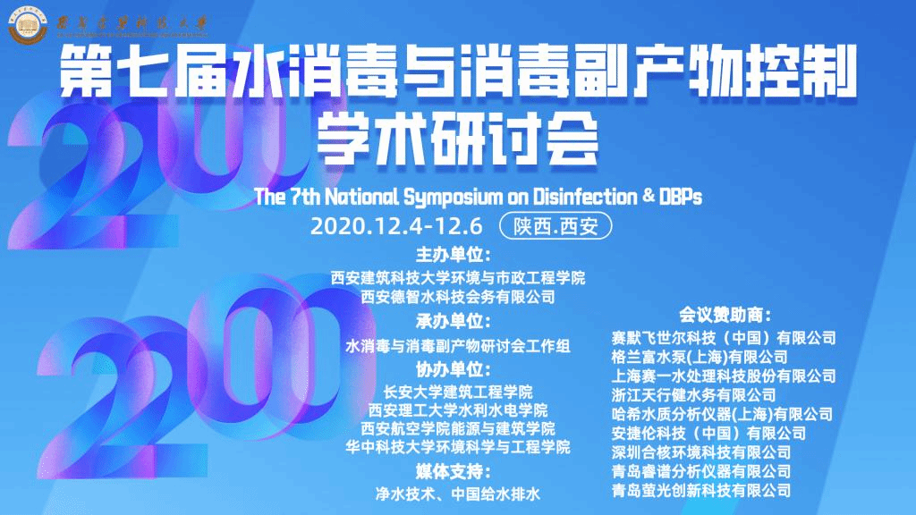 2020年12月4-6日,第七届水消毒与消毒副产物控制学术研讨会在陕西西安天域凯莱大饭店五楼会议厅开幕。本次会议由yl23455永利官网和西安德智水科技会务有限公司主办。“消毒与消毒副产物控制学术研讨会”于2013年由同济大学发起,迄今已由同济大学、清华大学、哈尔滨工业大学及厦门大学举办了六届。在继承以往六届的经验基础上,本着坚持学术、强调开放协作的办会精神,全面展现和交流2020年新冠肺炎疫情影响背景下水消毒与消毒副产物领域的新成果新发现,是一场专家云集、高水平、高质量的学术研讨盛会。yl23455永利官网文刚教授担任本届大会组织委员会主席。