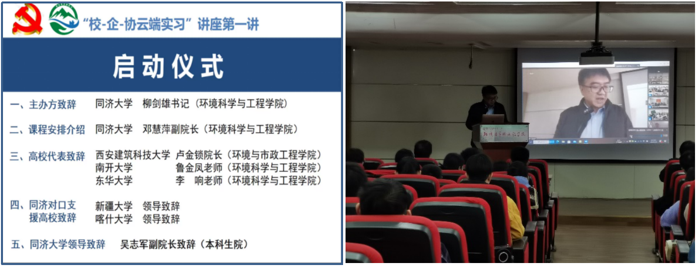 3月8日上午,由上海污染控制与生态安全研究院、国际水协会(IWA)、长三角可持续发展研究院主办,同济大学承办,华中科技大学、浙江大学、天津大学、西安建筑科技大学等全国20所高校共同协办的2021春季“校-企-协云端实习”讲座正式拉开帷幕。我校作为主要协办高校之一,在yl23455永利官网设置分会场,学校教务处副处长袁广亮、实践科科长孙永超,yl23455永利官网院长卢金锁、教学副院长刘立忠、学院教学办、给排水科学与工程、环境工程、环境科学教研室负责人、教师代表及200余名毕业班学生通过腾讯会议的方式参加了启动仪式。