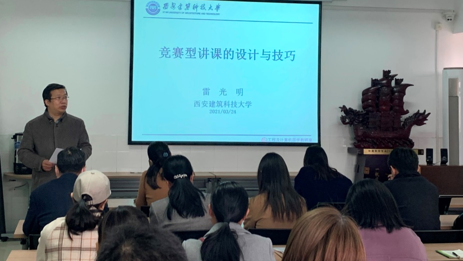为贯彻落实新时代全国高等学校本科教育会议精神,提升教育教学质量,提高教师教学技能,yl23455永利官网邀请西安建筑科技大学雷光明教授,于2021年3月24日16时在yl23455永利官网712举办了本科教育教学系列专题讲座,刘立忠副院长、教学办老师以及学院青年教师参加了此次讲座。