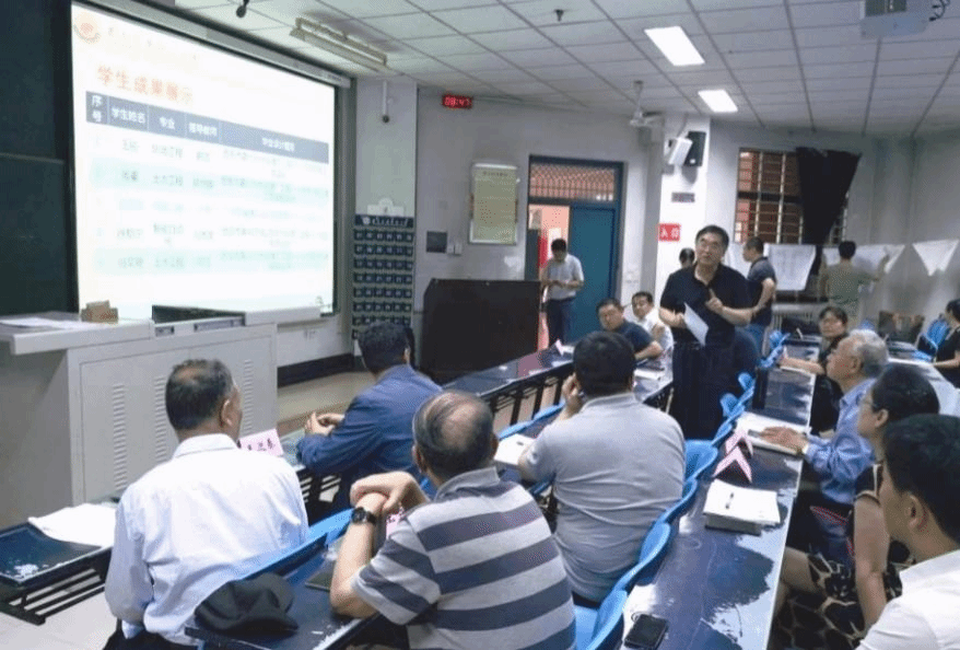 答辩会第二阶段由答辩委员会主任委员王社平副院长主持。首先,王院长介绍了联合毕业设计答辩安排。接下来,环境工程、土木工程、建筑电气与智能化专业的五名学生分别进行了设计内容的介绍及成果展示,每个答辩学生展示完成果后,由答辩委员会列席人员提问,答辩学生现场回答,最后由答辩委员会评委进行评分。