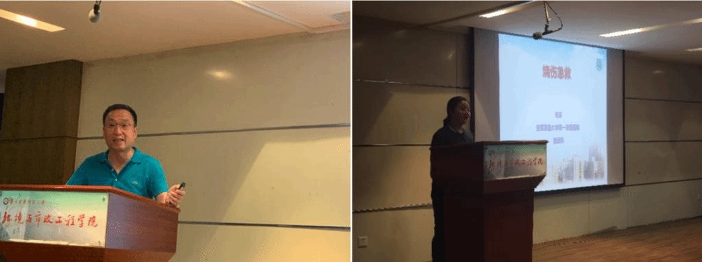 本次培训活动共分两部分。第一部分为理论知识讲座,首先由西安交通大学第二附属医院重症医学科王小闯医生向各位师生介绍了心肺复苏、AED使用、癫痫发作紧急救治、骨折病人搬运等常见急诊病情自救互救技能。随后,空军军医大学第一附属医院急诊科杨婧医生向大家介绍了烧伤、化学药剂腐蚀等校园实验室高发的安全问题急救处理方式。两位医生严谨而又风趣的讲解收获了现场师生的阵阵掌声。