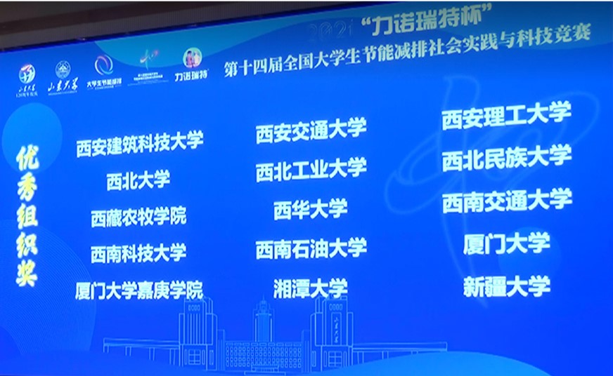 8月27日至28日,“力诺瑞特杯”第十四届全国大学生节能减排社会实践与科技竞赛在山东大学圆满落幕。本届比赛我校推荐参加国赛的15项作品中有3项获得三等奖,有5项作品成功入围最终决赛角逐特等奖和一等奖,入围决赛项目总数为历年最多。决赛中我校再创佳绩,最终荣获一等奖2项、二等奖3项,并获全国高校优秀组织奖,获奖数量和层次创我校参加该赛事以来最好成绩。