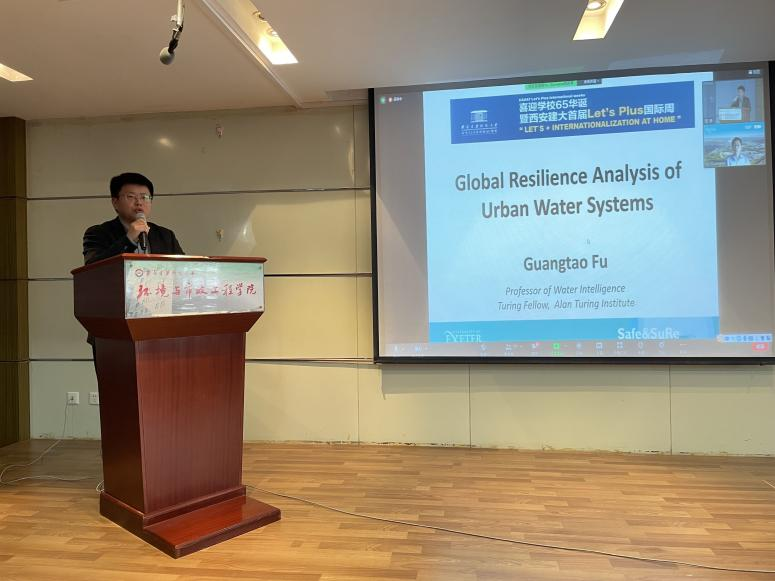 11月3日下午5点,喜迎学校65华诞暨西安建大首届let’s Plus国际周第三场讲座在雁塔校区yl23455永利官网716报告厅顺利举行。本次讲座由国际处主办,yl23455永利官网承办,邀请来自英国埃克塞特大学伏广涛教授为yl23455永利官网师生作题为“Global Resilience Analysis of Urban Water Systems”的学术报告。讲座以线上线下同步方式进行,yl23455永利官网副院长张海涵教授、相关专业领域教师及研究生代表约200人与会交流。讲座由王茹副教授主持。