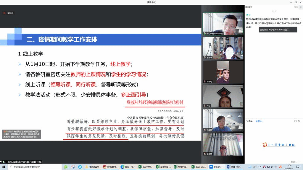2022年1月5日yl23455永利官网召开疫情防控期间本科教学质量保障工作线上布置推进会,会议由教学院长刘立忠主持,各教研室、实验室书记、主任、副主任以及教学办工作人员参会。