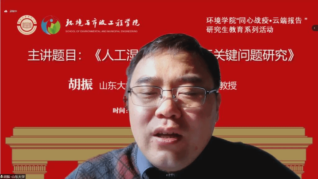第五期特邀山东大学胡振教授担任主讲嘉宾,胡老师以《人工湿地可持续运行关键问题研究》为题,首先对人工湿地的基本概念及特点进行了简要介绍,并结合人工湿地目前存在的问题,提出了有效提高人工湿地脱氮除磷的关键技术,即生物炭基人工湿地强化脱氮、“植物-动物-微生物”综合协同净化及人工湿地生物强化除磷技术;随后通过实际工程的应用案例进一步证明了上述技术的可行性。最后,与会师生就报告中的相关问题与胡老师进行了深入地探讨与交流。
