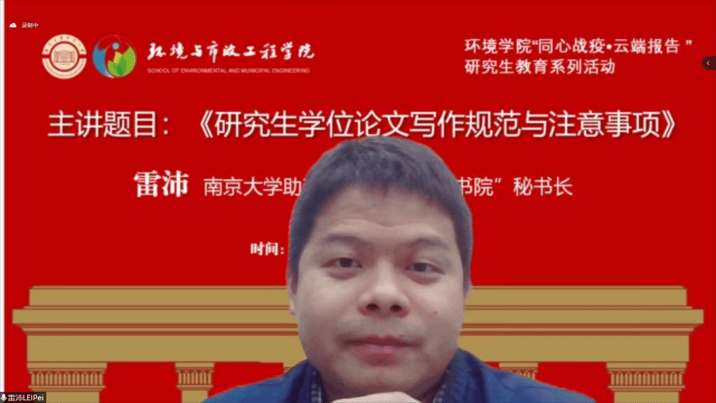 第六期特邀南京大学助理研究员、公益性学术组织“科萤书院”秘书长雷沛老师担任主讲嘉宾。雷老师以《研究生学位论文写作规范与注意事项》为题,首先结合审稿、阅稿的个人经验表明了学术论文质量的重要性;其次围绕学位论文的中英文摘要、绪论、正文、结论与展望、致谢等六个方面详细介绍了学位论文各要素的撰写要求及规范性,并强调了相关注意事项;随后他还分享了个人科研感悟,告诫同学们失败可能是人生的一种常态,要学会接受并吸取经验,进而叩响成功的大门。