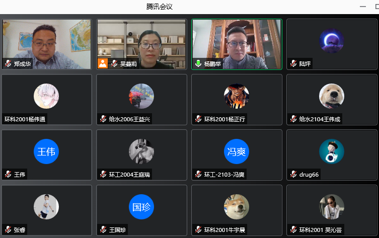 此外,为了更好的坚定学生抗击疫情的自信心,旨在帮助同学们在疫情管控期间克服困难,刻苦学习,了解就业现状和社会需求,学院邀请到环科专业优秀毕业生杨鹏举(中建三局第三建设工程有限责任公司副总经理、武汉抗疫火神山雷神山建设所属工区机电现场总指挥)、市政工程专业优秀毕业生章武首(陕西新泓水艺环境科技有限公司总经理、湖北建科国际工程有限公司陕西分公司总经理)分别从疫情防控、求学之路、职业生涯规划以及社会经验等方面对学生进行指导和帮助。杨鹏举讲述了自己参加武汉抗疫、建设“两山”医院的难忘经历。他用一个个鲜活的防疫事迹生动还原了武汉抗击疫情的真实场景,鞭策着广大青年学生要时刻谨记生命的意义在于奋斗,人生的价值在于奉献。章武首在演讲中,和同学们分享了他学习、工作和创业的亲身经历和体会,阐述了学习贵在“自律”,就业强调“平台”、“态度”、“协作”和“领悟”,创业的核心在于“创新”、“时机”和把握“新时代”特征。两位导师从自身经历、社会经验等方面帮助学生拓宽视野,为其在人生路上点亮一盏盏指路的明灯,指引他们向着心中的梦想,奋力前行!