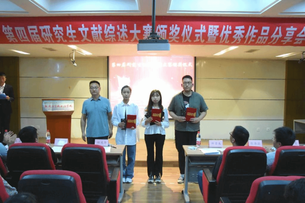 颁奖仪式结束后,获得本届比赛一等奖的三位选手分别进行了分享交流。机电学院李龙同学、化工学院刘姣同学、yl23455永利官网宋泽源同学分别从选题、文献查阅、综述撰写技巧与方法等方面向在场的研究生分享了参赛经验与体会,现场气氛热烈,同学们受益匪浅。