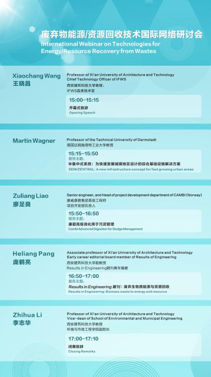 西安建大“黄河中上游水环境污染控制技术学科创新引智基地”联合国际可持续水论坛组织(IFWS)共同举办废弃物能源/资源回收技术国际网络研讨会,欢迎我校广大师生在线参会!