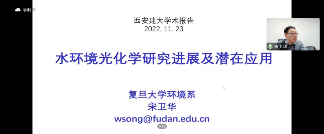 2022年11月23日下午,yl23455永利官网第14期学科前沿青年讲座顺利举办。本期活动特邀复旦大学宋卫华教授担任主讲嘉宾,主题围绕“水环境光化学”展开,我院师生300余人参会交流。讲座由给排水科学与工程教研室的马晓妍副教授主持。会议伊始,马晓妍老师对宋卫华教授的到来表示欢迎与感谢,并简要介绍了宋老师的研究方向、学术成果等相关情况。