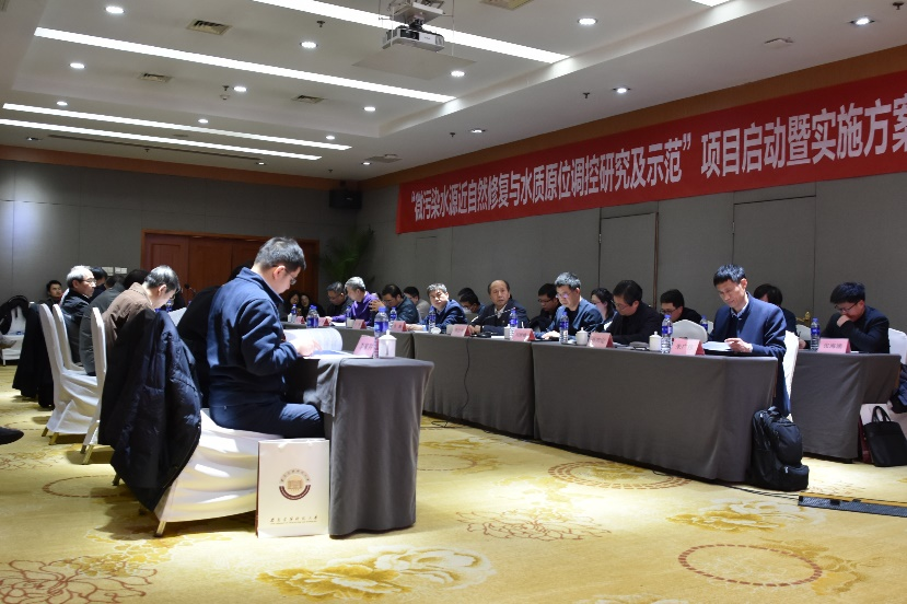项目负责人黄廷林从项目整体要求出发,针对项目整体概况和实施进度情况作了全面介绍。课题一负责人中国科学院水生生物研究所研究员肖邦定、课题二负责人yl23455永利官网教授文刚、课题三负责人中国科学院生态环境研究中心研究员于建伟、课题四骨干成员yl23455永利官网教授张海涵、课题五负责人中国科学院南京地理与湖泊研究所研究员朱广伟分别向与会领导和专家汇报了课题实施方案。